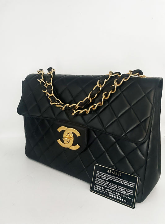 In 1983, Karl Lagerfeld reinterpreted this classic by adding the famous double C clasp, giving birth to the Chanel Timeless bag , also known as the Timeless Classic. Recognizable by its diamond quilting, its leather-wrapped chain, and its timeless lines, it became an absolute it-bag. Available in multiple sizes and materials, the black Chanel bag remains the most iconic version, the ultimate embodiment of luxury, craftsmanship, and Parisian elegance, passed down through generations by the House of Chanel.