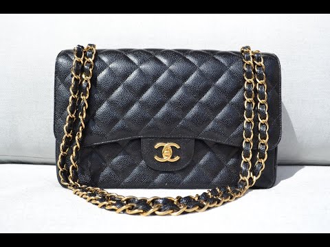 Soline offers you this exceptional iconic Chanel Timeless Jumbo double flap handbag in black quilted caviar leather , gold metal hardware, a gold metal chain strap interwoven with black caviar leather for hand and shoulder carrying One patch pocket on the back of the bag Flap closure, silver CC logo clasp Double flap Burgundy leather interior lining, 1 double patch pocket, 1 lipstick loop Signature: "Chanel ®Made in Italy" Date: 2017 Dimensions: 30 x 19.5 x 10 cm (11.8 x 7.9 x 3.5 Inches) Chain length: 60 cm (23.6 Inches) SOLD with dust bag hologram and Entrupy certificate of authenticity