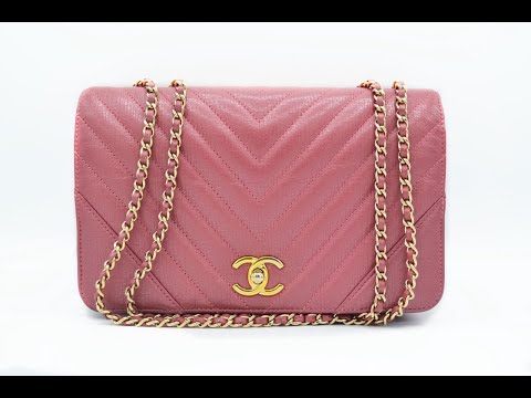 Chanel Chevron Pink Calfskin Flap Statement Shoulder Bag.