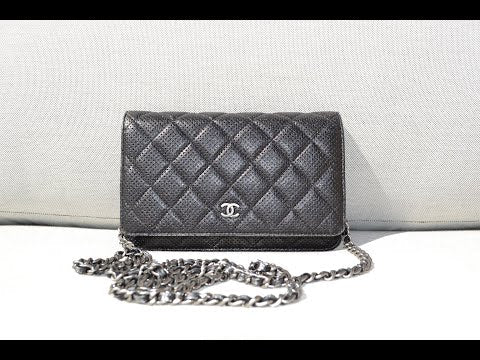 Chanel wallet on chain (woc) shoulder bag in black and silver perforated leather