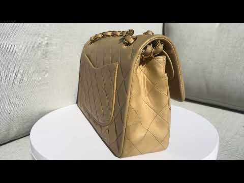 Timeless 23 cm double flap bag in beige quilted lambskin